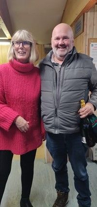 Penny organised the games, kept the scores and presented Colin with his Magnum of Prosecco.