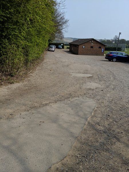 A sports centre on your right and a small pavillion