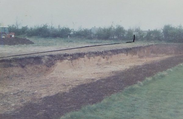 The following 12 pictures show the progression of the grounds from rough sloping ground to nearly croquet lawns (and some regression due to weather and lack of respect by some of the local Yobs) this took from 1984 to 1987. It was at this time that it was realised that someone had made a Boo Boo of the dimension, so the area was extended (2 more pictures) in 1988.